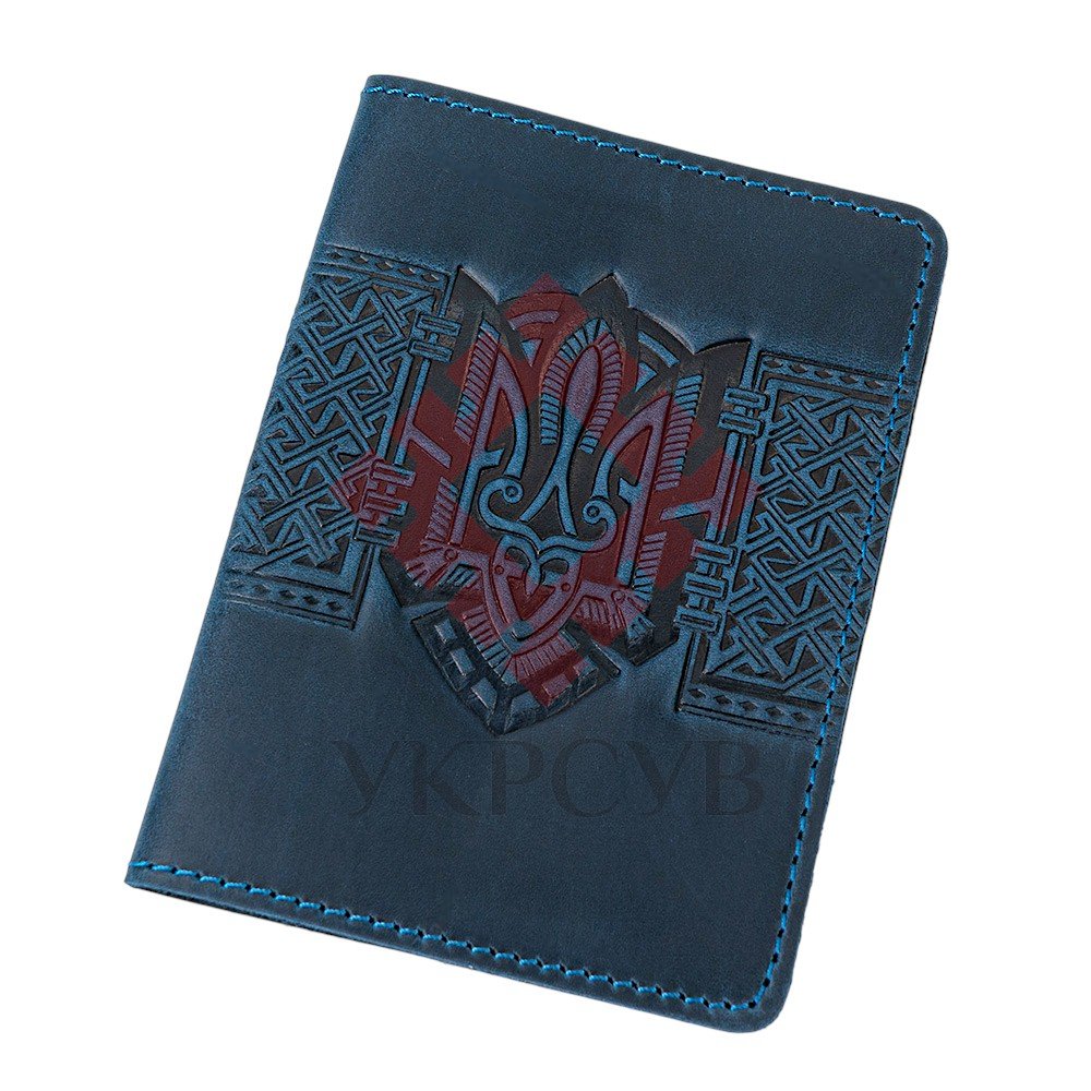 Обкладинка для військового квитка "Тризуб - геометрія", темно-синій (29845)