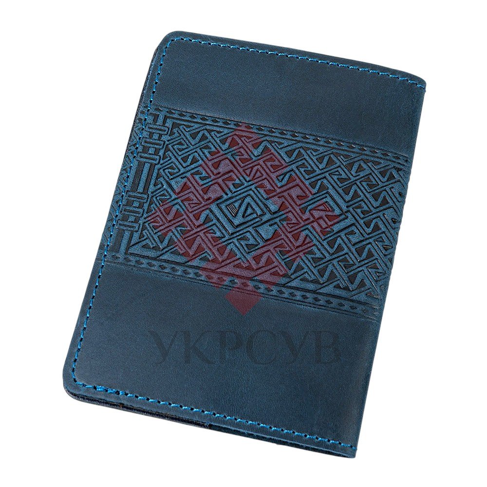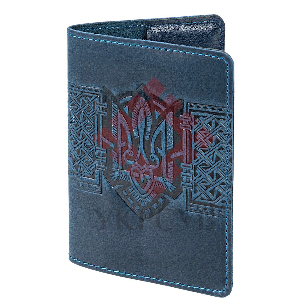 Обкладинка для військового квитка "Тризуб – геометрія", темно-синійСтильна обкладинка з натуральної шкіри в темно-синому кольорі створена спеціально для військового квитка. Глибоке тиснення з тризубом та геометричними орнаментами надає аксесуару виразності, підкреслює український характер і робить його помітним серед інших. Натуральна шкіра забезпечує міцність та довговічність, приємна на дотик фактура зберігає гарний вигляд навіть за частого користування. Акуратне прошиття та продумана конструкція дозволяють обкладинці щільно фіксувати документ та захищати його від зношування. Всередині передбачено зручні кишені для розміщення військового квитка, а також додаткові відділення, які можуть стати у пригоді для карток чи невеликих документів.