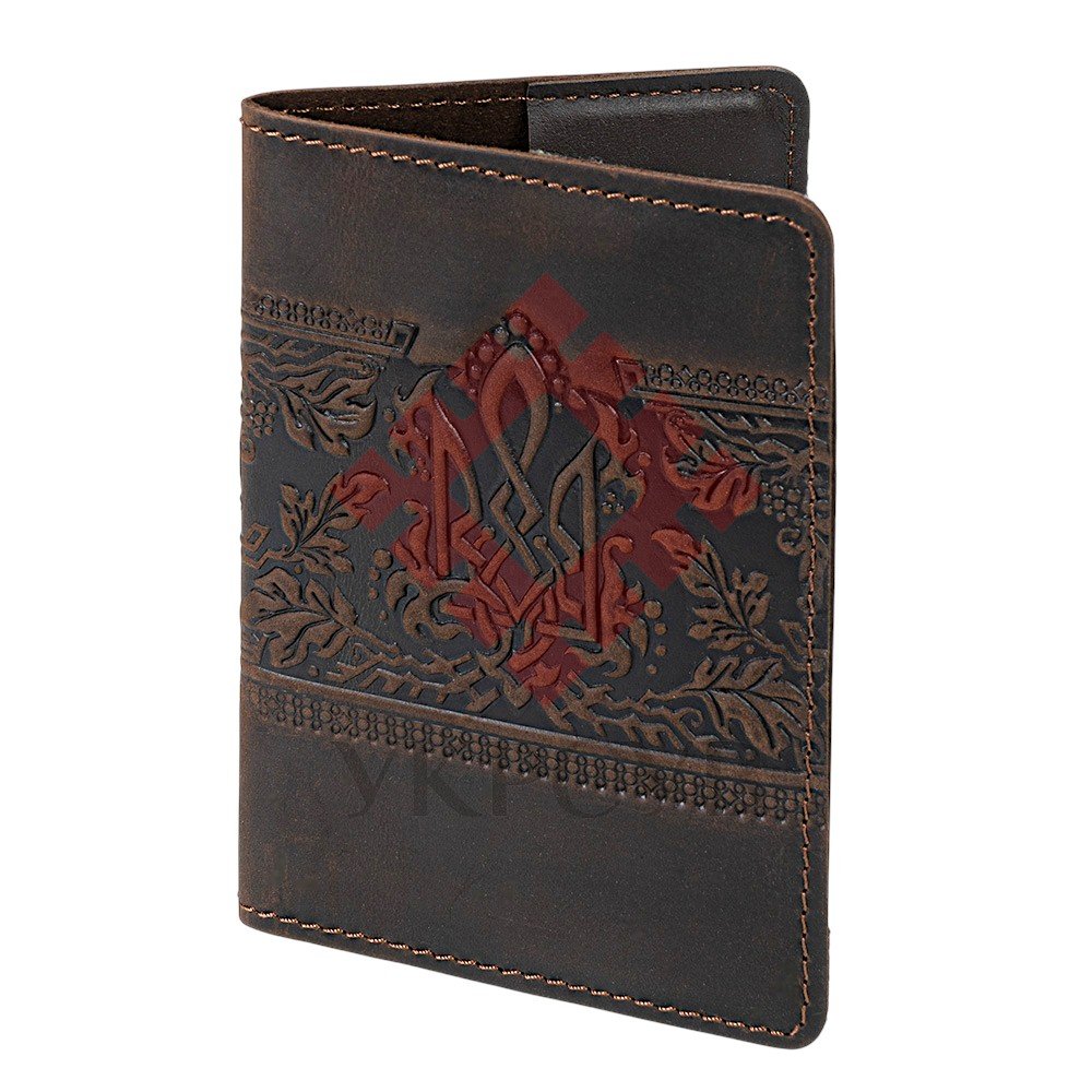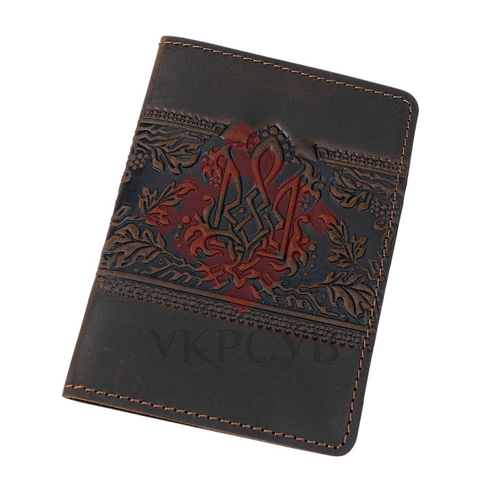 Обкладинка для військового квитка "Тризуб - калина", темно-коричневий (29853)