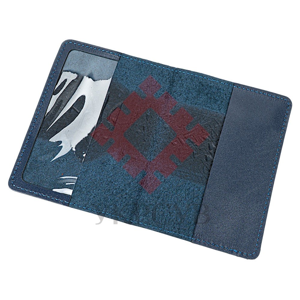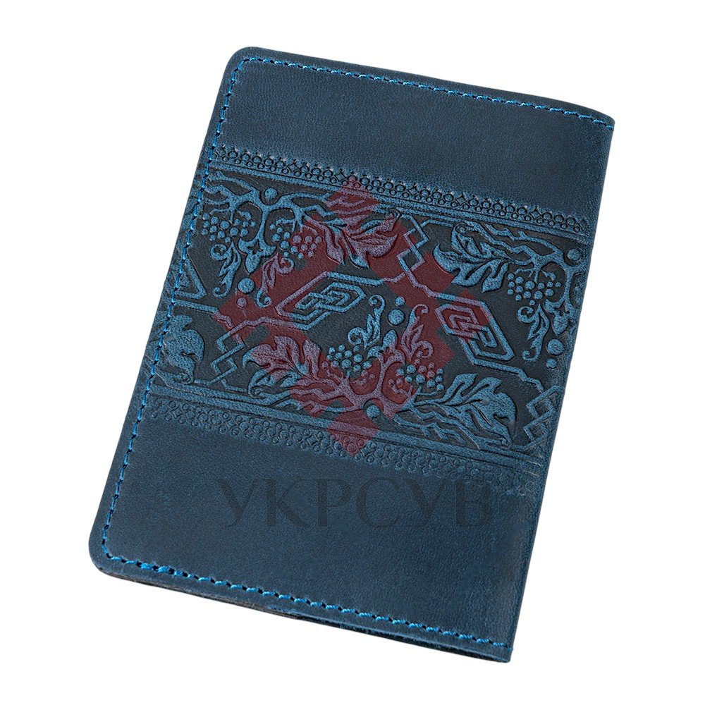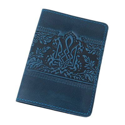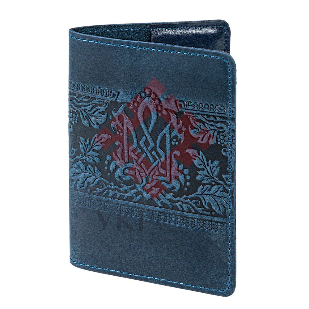 Обкладинка для військового квитка "Тризуб – калина", темно-синійТемно-синя шкіряна обкладинка з тисненим тризубом і калиновим орнаментом — це стильний та символічний аксесуар, що захищає військовий квиток і водночас підкреслює українську ідентичність. Об’ємний візерунок із гронами калини, листям і плетеним тризубом виглядає виразно та додає виробу автентичного шарму. Натуральна шкіра забезпечує високу міцність та зносостійкість, а приємна фактура й охайне прошиття роблять обкладинку не лише практичною, а й естетично привабливою. Усередині передбачені зручні кишені для документа, а також додаткові відділення, які можна використати для карток чи інших невеликих паперів. Темно-синій колір надає аксесуару сучасного вигляду, а символічне тиснення робить його чудовим варіантом як для особистого користування, так і для подарунка.