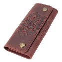 Ключниця "Тризуб - геометрія", бордовийСтильна шкіряна ключниця у глибокому бордовому кольорі доповнена виразним тисненням з поєднанням тризуба та геометричного орнаменту. Такий аксесуар виглядає солідно та водночас сучасно, надаючи щоденним речам національного характеру й індивідуальності. Модель виконана з натуральної шкіри, приємної на дотик та витривалої у використанні. Всередині розташовано шість металевих карабінів, які надійно фіксують ключі та не дають їм загубитися чи пошкодити вміст сумки. Застібається ключниця на металеві кнопки, що забезпечують швидкий доступ і надійне закриття.