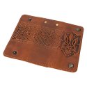 Ключниця "Тризуб - геометрія", коричневийСтильна шкіряна ключниця у глибокому коричневому кольорі доповнена виразним тисненням з поєднанням тризуба та геометричного орнаменту. Такий аксесуар виглядає солідно та водночас сучасно, надаючи щоденним речам національного характеру й індивідуальності. Модель виконана з натуральної шкіри, приємної на дотик та витривалої у використанні. Всередині розташовано шість металевих карабінів, які надійно фіксують ключі та не дають їм загубитися чи пошкодити вміст сумки. Застібається ключниця на металеві кнопки, що забезпечують швидкий доступ і надійне закриття.