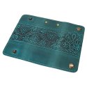Ключниця "Тризуб – калина", бірюзовийСтильна ключниця з натуральної шкіри, створена для тих, хто цінує символіку та український характер у щоденних речах. Бірюзовий колір додає виробу глибини, а тиснений візерунок із Тризубом та калиновою гілкою підкреслює його автентичність. Ключниця зберігає форму, приємна на дотик та надійно захищає ключі від пошкоджень чи втрати. Усередині розташовано 6 міцних металевих карабінів, що дозволяють зручно організувати необхідні ключі.