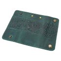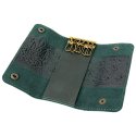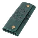 Ключниця "Тризуб – калина", темно-зеленийСтильна ключниця з натуральної шкіри, створена для тих, хто цінує символіку та український характер у щоденних речах. Темно-зелений колір додає виробу глибини, а тиснений візерунок із Тризубом та калиновою гілкою підкреслює його автентичність. Ключниця зберігає форму, приємна на дотик та надійно захищає ключі від пошкоджень чи втрати. Усередині розташовано 6 міцних металевих карабінів, що дозволяють зручно організувати необхідні ключі.