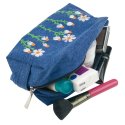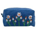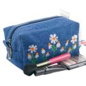 Вишита косметичка №973Вишита косметичка — стильний аксесуар, створений, щоб щодня дарувати настрій легкості та природної гармонії. Прямокутна форма робить її зручною для зберігання всіх необхідних дрібниць, а ніжний візерунок ромашок додає виробу особливого шарму. Модель виконана з міцного блакитного джинсу та декорована акуратною машинною вишивкою білих квітів з яскравими помаранчевими серединками. Всередині — бавовняна підкладка, що забезпечує приємність у використанні та допомагає тримати форму. Надійна блискавка дозволяє легко відкривати й закривати косметичку навіть при наповненні. Це практичний аксесуар для подорожей, щоденного використання або стильний подарунок, який підкреслить індивідуальність власниці.