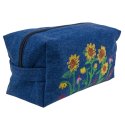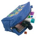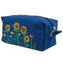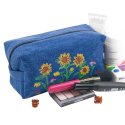 Вишита косметичка №978Вишита косметичка — яскравий та практичний аксесуар, який поєднує натуральність джинсової тканини та теплоту українських мотивів. Глибокий синьо-бірюзовий відтінок чудово підкреслює вишивку соняхів і польових квітів, роблячи дизайн живим, виразним і по-справжньому літнім. Модель має компактну, але дуже містку прямокутну форму, що дозволяє зручно розмістити косметику, доглядові засоби та інші потрібні дрібниці. Натуральна підкладка та міцна застібка-блискавка забезпечують комфорт у щоденному використанні, а щільний джинс допомагає косметичці добре тримати форму. Це чудовий варіант для подорожей, роботи чи щоденної сумки, а також стильний подарунок для поціновувачів українського стилю та яскравих аксесуарів.