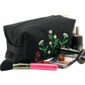 Вишита косметичка №981Вишита косметичка — стильний аксесуар, у якому поєдналися глибокий чорний колір та яскраві барви польових квітів. Контрастна вишивка з ромашок, конюшини та дрібних польових рослин виглядає по-справжньому живою, створюючи ефект ніжного букету на насиченому темному фоні. Завдяки прямокутній формі косметичка є дуже місткою та зручною у використанні. Вона легко вміщує декоративну косметику, аксесуари та інші необхідні дрібниці. Міцна блискавка забезпечує комфорт та надійність, а бавовняна підкладка всередині захищає вміст і допомагає виробу тримати акуратну форму. Ця косметичка стане гарним доповненням до щоденних образів, а також чудовим подарунком для поціновувачів українських мотивів та практичних аксесуарів.