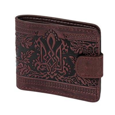Гаманець "Тризуб – калина", бордовийСтильний та лаконічний гаманець із натуральної шкіри, створений для поціновувачів української символіки та сучасної практичності. Бордовий колір надає виробу індивідуальності, а витончене тиснення з мотивом калини та тризуба підкреслює національний характер аксесуара. Гаманець компактний, але водночас місткий: передбачено відділення для купюр, монет, карток та фото. Міцна кнопкова застібка забезпечує надійне зберігання вмісту, а якісна шкіра гарантує довговічність та приємний тактильний досвід.