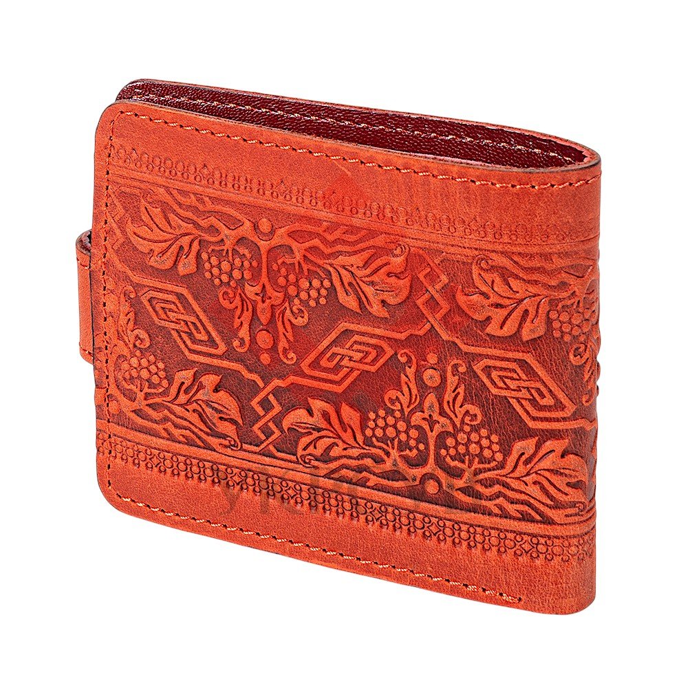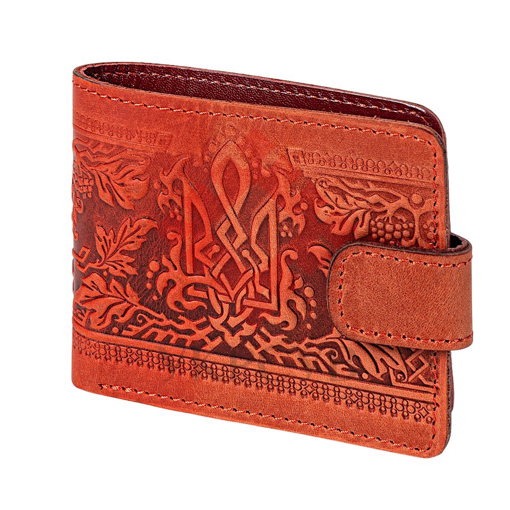 Гаманець "Тризуб – калина", червонийСтильний та лаконічний гаманець із натуральної шкіри, створений для поціновувачів української символіки та сучасної практичності. Червоний колір надає виробу індивідуальності, а витончене тиснення з мотивом калини та тризуба підкреслює національний характер аксесуара. Гаманець компактний, але водночас місткий: передбачено відділення для купюр, монет, карток та фото. Міцна кнопкова застібка забезпечує надійне зберігання вмісту, а якісна шкіра гарантує довговічність та приємний тактильний досвід.
