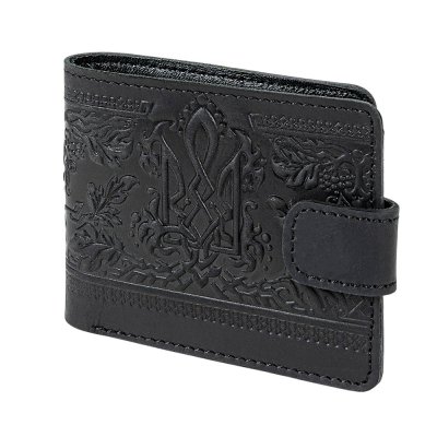Гаманець "Тризуб – калина", чорнийСтильний та лаконічний гаманець із натуральної шкіри, створений для поціновувачів української символіки та сучасної практичності. Чорний колір надає виробу індивідуальності, а витончене тиснення з мотивом калини та тризуба підкреслює національний характер аксесуара. Гаманець компактний, але водночас місткий: передбачено відділення для купюр, монет, карток та фото. Міцна кнопкова застібка забезпечує надійне зберігання вмісту, а якісна шкіра гарантує довговічність та приємний тактильний досвід.