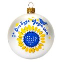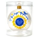 Ялинкова кулька «Сонях – Все буде Україна»Ялинкова кулька «Сонях – Все буде Україна» — це світла та надихаюча святкова прикраса, що символізує віру, надію й незламність українського духу. Центральний образ соняха — знаку життя, тепла й сили — поєднаний із теплим написом «Все буде Україна», який звучить як щира обіцянка світлого майбутнього. Синьо-жовта кольорова гама, доповнена декоративними елементами та легким орнаментальним розписом, створює відчуття гармонії й радості. Світлий матовий фон підкреслює яскравість композиції, а класична форма кульки робить її універсальною для будь-якого новорічного декору.