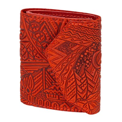 Гаманець міні "Карпати", червонийМінігаманець «Карпати» — це поєднання природної сили гір і сучасної функціональності. Рельєфне тиснення з мотивами гірських вершин, хвиль, місяця та геометричних орнаментів створює виразний етнічний характер виробу. Натуральна шкіра приємна на дотик, злегка матова, з ефектом вінтажу. Акуратний шов контрастною ниткою підкреслює форму, а компактний розмір робить гаманець зручним для щоденного використання — він легко поміщається в кишені чи невеликій сумці. Попри мініформат, модель продумана до деталей: зручні відділення дозволяють організовано зберігати купюри, картки та монети. Це стильний аксесуар для тих, хто цінує українські символи та практичність.