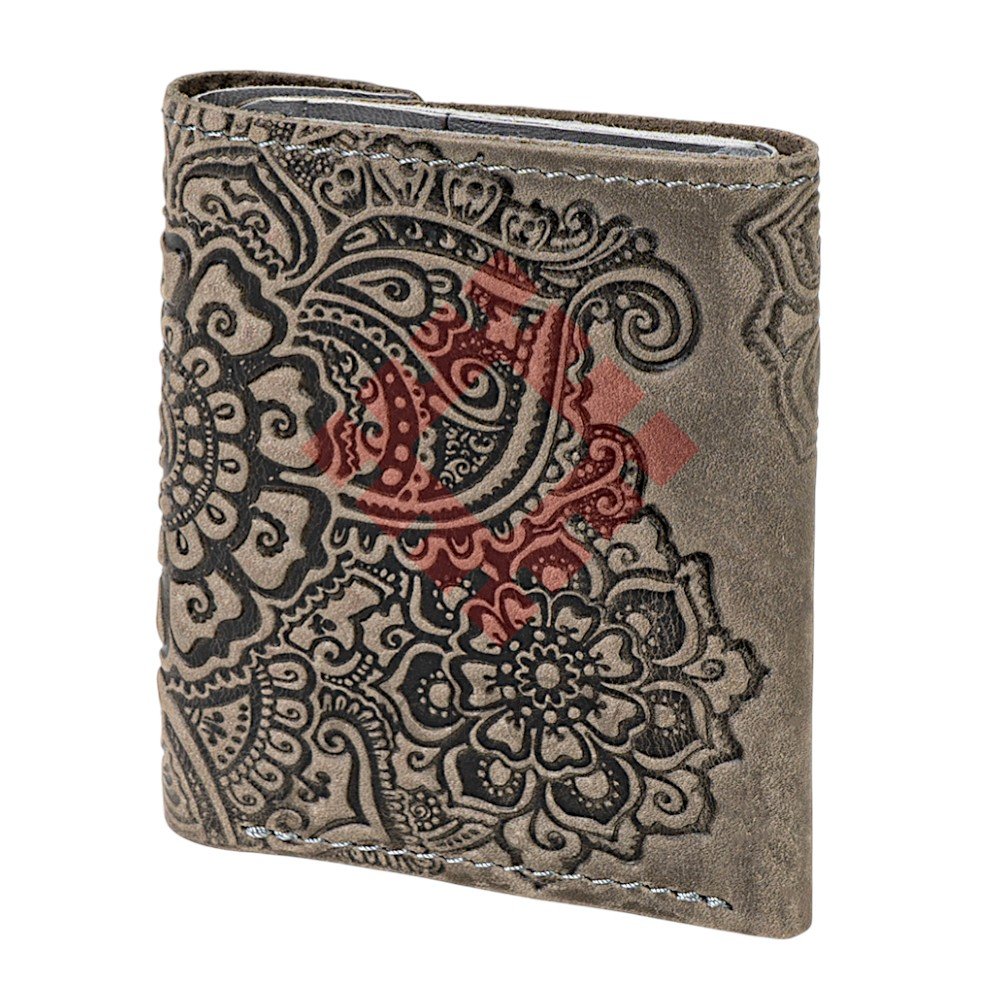 Гаманець шкіряний міні "Квіти", сірийМінігаманець «Квіти» — це поєднання витонченості та функціональності в компактному форматі. Розкішне тиснення з квітковими та орнаментальними мотивами створює ефект об’ємного візерунка, який красиво підкреслює текстуру натуральної шкіри. Орнамент із плавними лініями, квітами та декоративними елементами нагадує традиційні українські мотиви, надаючи виробу характеру та символічності. Насичений колір із легким вінтажним ефектом робить гаманець стильним акцентом у щоденному образі. Компактний розмір дозволяє зручно розмістити гаманець у невеликій сумці або навіть кишені, при цьому він зберігає достатню місткість для найнеобхіднішого.