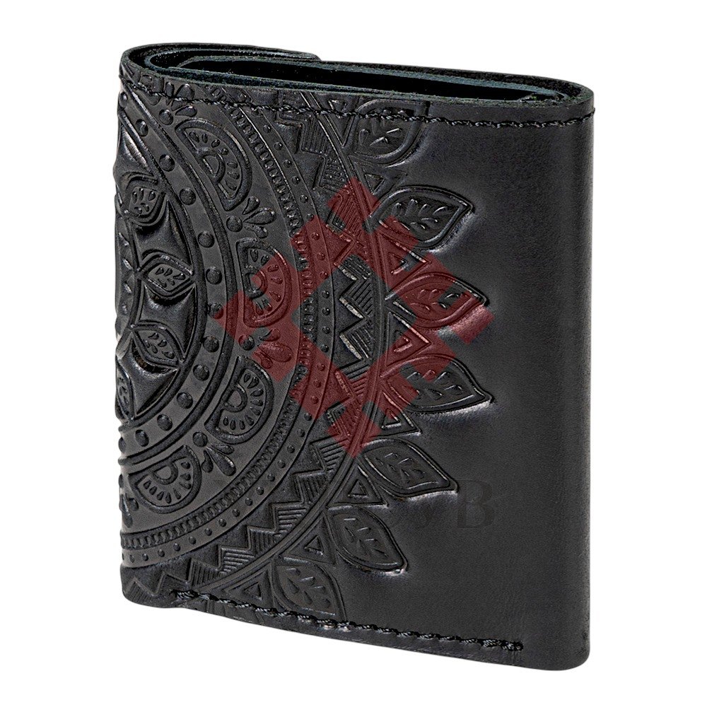Гаманець шкіряний міні "Етно", чорнийКомпактний шкіряний гаманець з виразним етнічним орнаментом — стильний акцент для тих, хто цінує українську символіку та мінімалізм. Глибоке тиснення у вигляді сонячного етно-візерунку додає виробу характеру та об’ємності, підкреслюючи ручну майстерність виконання. Незважаючи на міні-формат, гаманець зручний для щоденного використання. Він легко поміщається в сумку або кишеню, зберігаючи необхідні картки та купюри в порядку. Натуральна шкіра приємна на дотик, міцна та з часом набуває благородної патини.