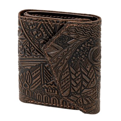 Гаманець шкіряний міні "Карпати", коричневийМінігаманець «Карпати» — це поєднання природної сили гір і сучасної функціональності. Рельєфне тиснення з мотивами гірських вершин, хвиль, місяця та геометричних орнаментів створює виразний етнічний характер виробу. Натуральна шкіра приємна на дотик, злегка матова, з ефектом вінтажу. Акуратний шов контрастною ниткою підкреслює форму, а компактний розмір робить гаманець зручним для щоденного використання — він легко поміщається в кишені чи невеликій сумці. Попри мініформат, модель продумана до деталей: зручні відділення дозволяють організовано зберігати купюри, картки та монети. Це стильний аксесуар для тих, хто цінує українські символи та практичність.