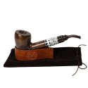 Люлька для куріння ручної роботи «Карпатський вечір», горіх, кам'яний мундштукВишукана люлька для куріння ручної роботи, виготовлена з натурального горіха, поєднує елегантну класичну форму та природну красу благородної деревини. Теплий темно-коричневий відтінок горіха підкреслює природну текстуру дерева, а покриття карнаубським воском надає поверхні м’якого шовковистого блиску та додаткового захисту. Мундштук виготовлений з акрилу та штучного каменю і прикрашений декоративними вставками з контрастною текстурою. Таке поєднання матеріалів створює стильний баланс між природною деревиною та сучасними деталями. Люлька розрахована на стандартний фільтр 8 мм, що забезпечує більш м’яке та комфортне куріння. У комплект входять замшевий чохол для зберігання та шкіряна підставка, які роблять користування люлькою ще зручнішим і підкреслюють її естетичну привабливість. Це чудовий вибір для поціновувачів традиційного куріння, колекціонерів та тих, хто цінує унікальні речі ручної роботи.