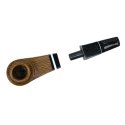 Люлька для куріння ручної роботи «Хортиця», морений дуб, кам'яний мундштукОригінальна люлька для куріння ручної роботи, виконана з мореного дуба — міцної та довговічної деревини з виразною природною текстурою. Геометрична форма чаші та прямий корпус створюють сучасний і стриманий силует, що вигідно вирізняє модель серед класичних люльок. Завдяки покриттю карнаубським воском деревина набуває глибокого теплого відтінку та приємного природного блиску. Мундштук виготовлений із акрилу та штучного каменю з темними декоративними вставками. Контраст між світлими та темними елементами підкреслює чітку геометрію виробу та додає люльці сучасного характеру. Конструкція передбачає використання стандартного фільтра 8 мм, що допомагає зробити куріння більш м’яким та комфортним. У комплект входять замшевий чохол для зберігання та шкіряна підставка, які забезпечують зручність використання та підкреслюють статус виробу ручної роботи. Така люлька стане чудовим вибором як для щоденного використання, так і для подарунка поціновувачу стильних аксесуарів.