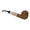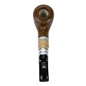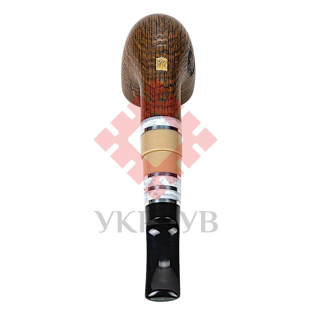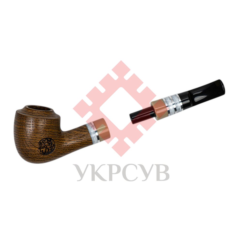 Люлька для куріння ручної роботи «Козацька дума», морений дуб, кам'яний мундштукВишукана люлька для куріння ручної роботи, створена з мореного дуба — благородної деревини з виразною текстурою та глибоким природним відтінком. Класична округла форма чаші гармонійно поєднується з плавною лінією шийки, підкреслюючи природну красу дерева. Покриття карнаубським воском захищає поверхню та додає деревині м’якого благородного блиску. Мундштук виконаний із акрилу та штучного каменю з декоративними світлими вставками, що створюють стильний контраст із темним деревом. Така комбінація матеріалів надає люльці сучасного вигляду та підкреслює її індивідуальність. Конструкція передбачає використання стандартного фільтра 8 мм, який допомагає зробити куріння більш м’яким і комфортним. До комплекту входять замшевий чохол для зберігання та шкіряна підставка, що роблять використання люльки зручним і підкреслюють статус виробу ручної роботи. Така модель стане чудовим подарунком для поціновувачів якісних люльок та стильних аксесуарів.