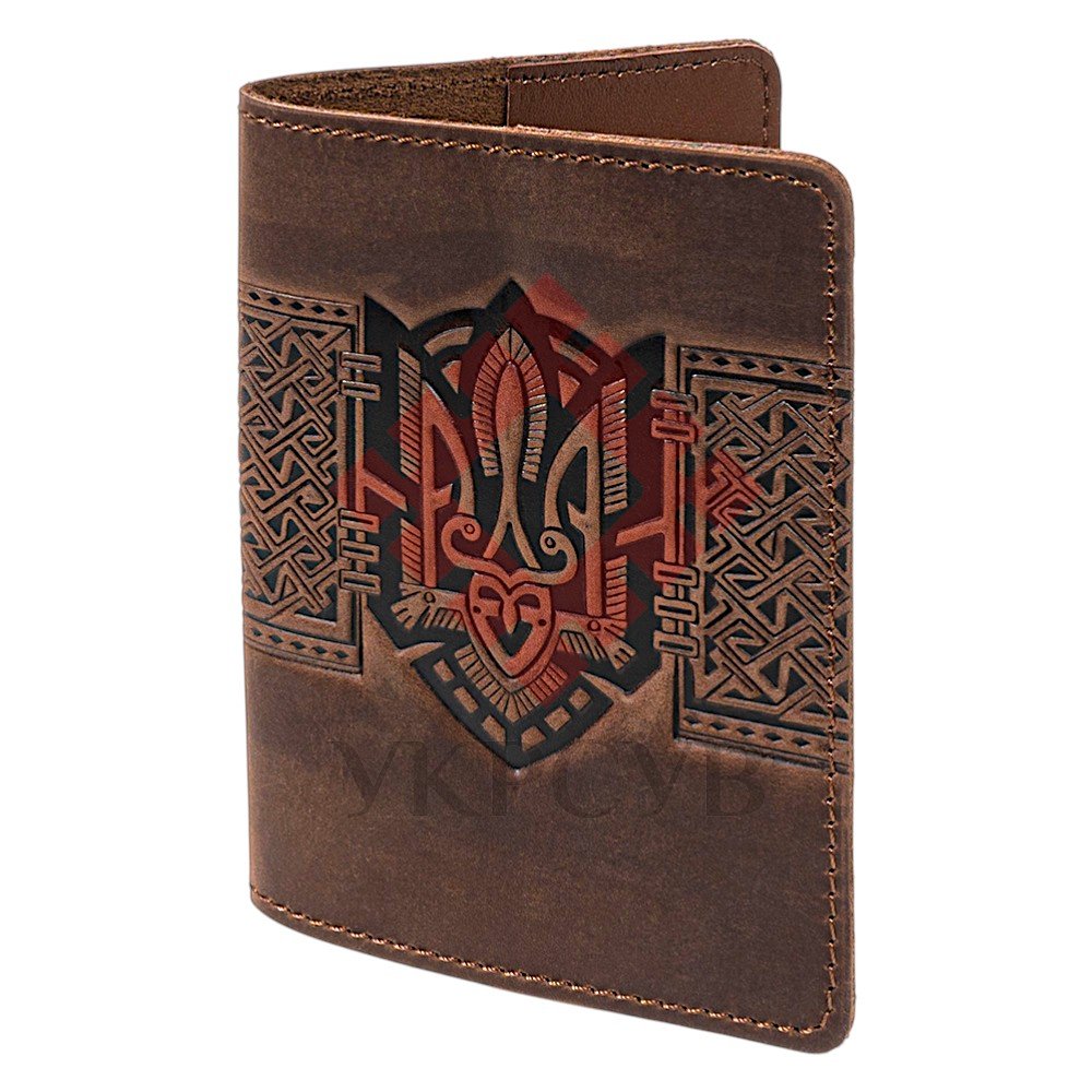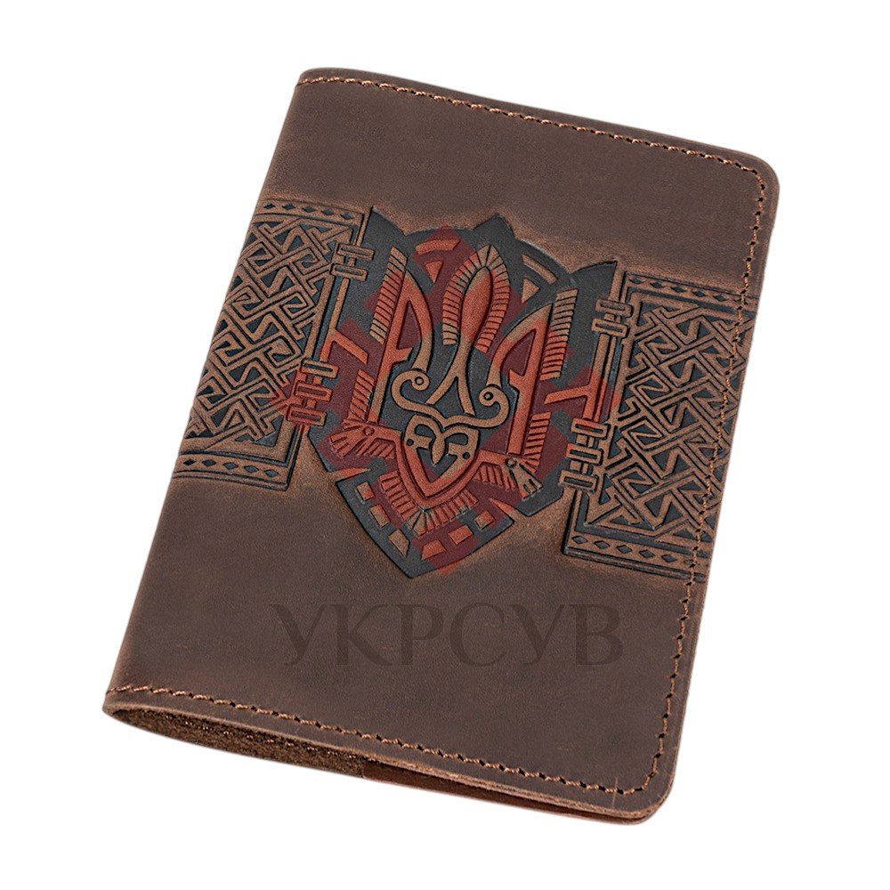 Обкладинка для паспорта "Тризуб - геометрія", темно-коричневий (29024)