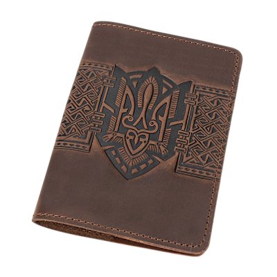 Обкладинка для паспорта "Тризуб - геометрія", темно-коричневийЛаконічна обкладинка для паспорта з виразним тисненням у вигляді Тризуба, доповненого геометричним орнаментом. Дизайн поєднує символіку державності та сучасну графічну стилістику, створюючи стриманий, але впізнаваний образ. Виготовлена зі 100% натуральної шкіри, обкладинка приємна на дотик і відзначається високою зносостійкістю. Матеріал з часом набуває благородного вигляду, зберігаючи естетику та функціональність виробу. Компактний формат забезпечує зручність у щоденному використанні, а внутрішні кишені дозволяють акуратно розмістити паспорт та інші необхідні документи. Це практичний аксесуар із глибоким змістом і характером.
