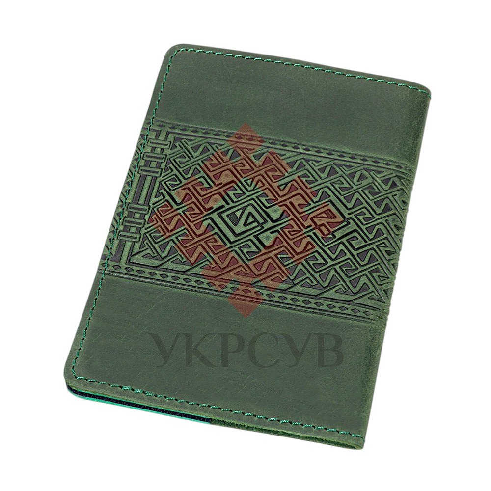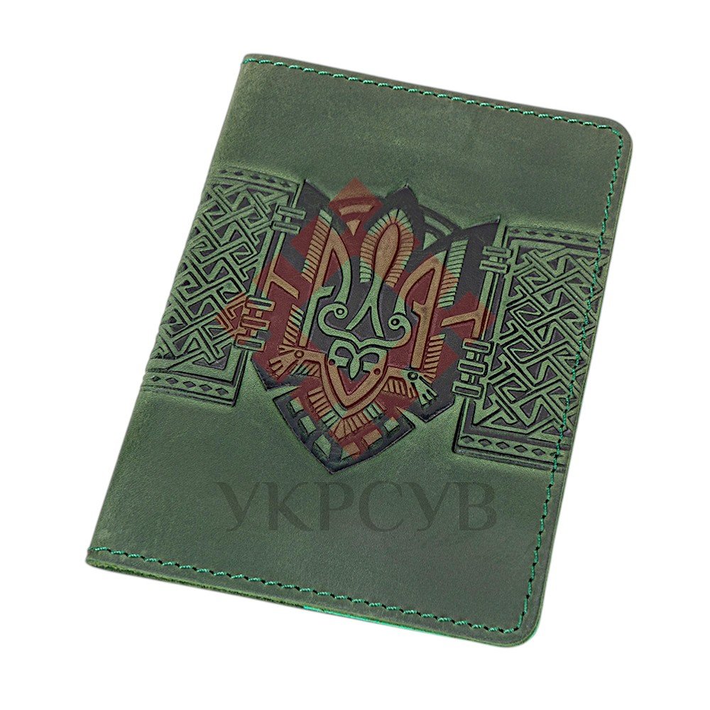 Обкладинка для паспорта "Тризуб - геометрія", зелений (29022)