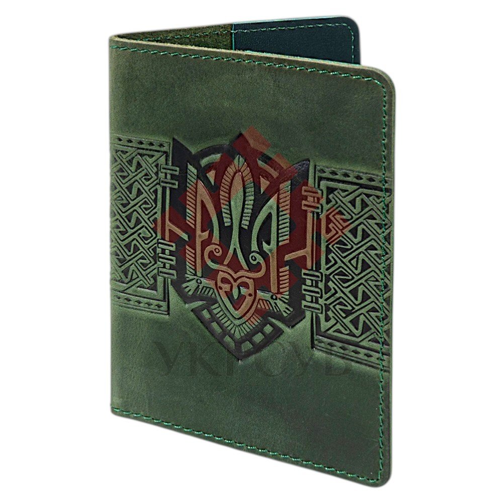 Обкладинка для паспорта "Тризуб - геометрія", зеленийЛаконічна обкладинка для паспорта з виразним тисненням у вигляді Тризуба, доповненого геометричним орнаментом. Дизайн поєднує символіку державності та сучасну графічну стилістику, створюючи стриманий, але впізнаваний образ. Виготовлена зі 100% натуральної шкіри, обкладинка приємна на дотик і відзначається високою зносостійкістю. Матеріал з часом набуває благородного вигляду, зберігаючи естетику та функціональність виробу. Компактний формат забезпечує зручність у щоденному використанні, а внутрішні кишені дозволяють акуратно розмістити паспорт та інші необхідні документи. Це практичний аксесуар із глибоким змістом і характером.