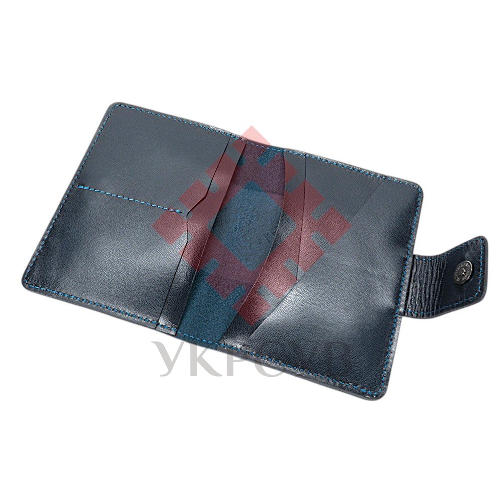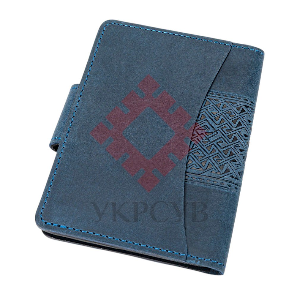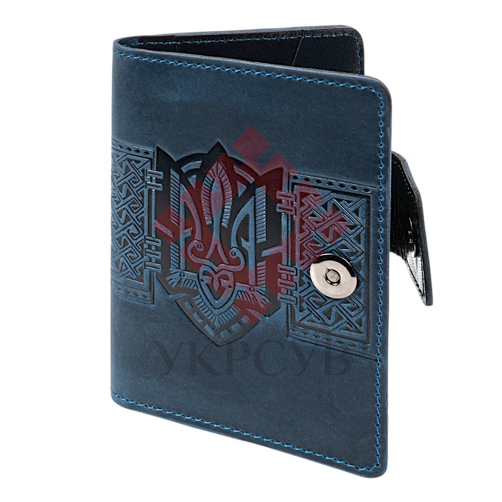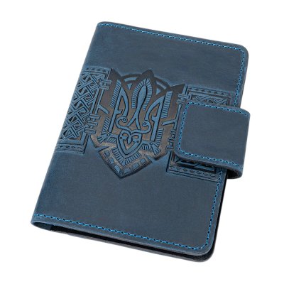 Обкладинка для документів "Тризуб", синійСтильна обкладинка для документів із виразним тисненням у вигляді Тризуба — символу сили, свободи та української ідентичності. Орнаментальні елементи гармонійно доповнюють композицію, створюючи глибокий і впізнаваний дизайн. Виріб виготовлений зі 100% натуральної шкіри, яка відзначається довговічністю та приємною текстурою. Завдяки продуманій конструкції обкладинка забезпечує надійний захист документів і зручне користування щодня. Функціональні внутрішні відділення дозволяють акуратно розмістити необхідні документи, а застібка на кнопці гарантує їх безпечне зберігання. Це не просто практичний аксесуар, а виразний елемент стилю з українським характером.