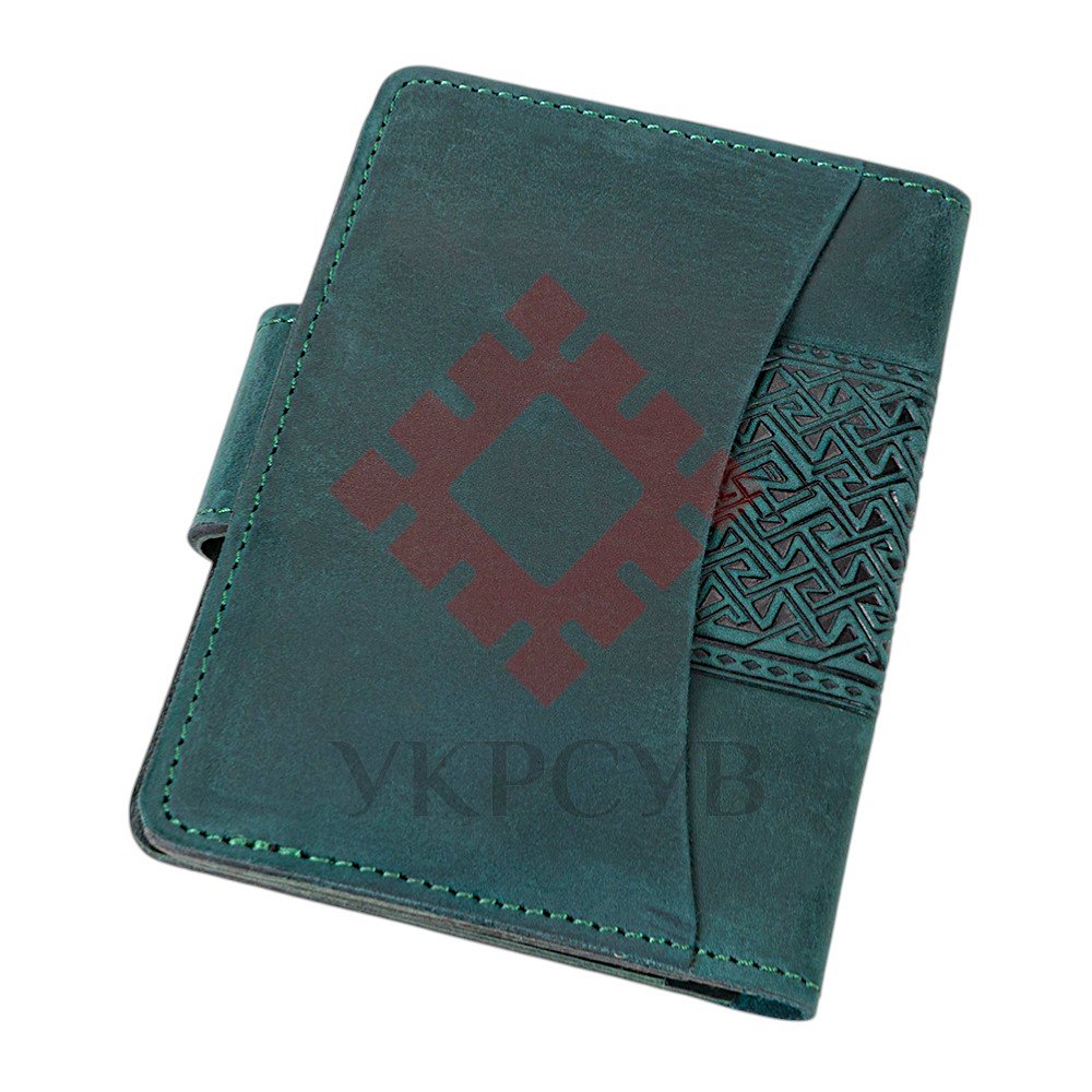 Обкладинка для документів "Тризуб", темно-зеленийСтильна обкладинка для документів із виразним тисненням у вигляді Тризуба — символу сили, свободи та української ідентичності. Орнаментальні елементи гармонійно доповнюють композицію, створюючи глибокий і впізнаваний дизайн. Виріб виготовлений зі 100% натуральної шкіри, яка відзначається довговічністю та приємною текстурою. Завдяки продуманій конструкції обкладинка забезпечує надійний захист документів і зручне користування щодня. Функціональні внутрішні відділення дозволяють акуратно розмістити необхідні документи, а застібка на кнопці гарантує їх безпечне зберігання. Це не просто практичний аксесуар, а виразний елемент стилю з українським характером.
