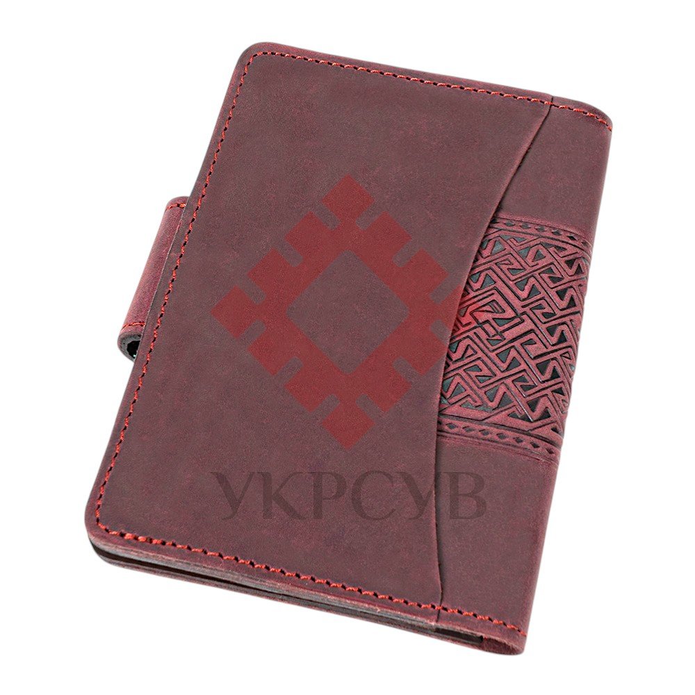 Обкладинка для документів "Тризуб", бордовийСтильна обкладинка для документів із виразним тисненням у вигляді Тризуба — символу сили, свободи та української ідентичності. Орнаментальні елементи гармонійно доповнюють композицію, створюючи глибокий і впізнаваний дизайн. Виріб виготовлений зі 100% натуральної шкіри, яка відзначається довговічністю та приємною текстурою. Завдяки продуманій конструкції обкладинка забезпечує надійний захист документів і зручне користування щодня. Функціональні внутрішні відділення дозволяють акуратно розмістити необхідні документи, а застібка на кнопці гарантує їх безпечне зберігання. Це не просто практичний аксесуар, а виразний елемент стилю з українським характером.
