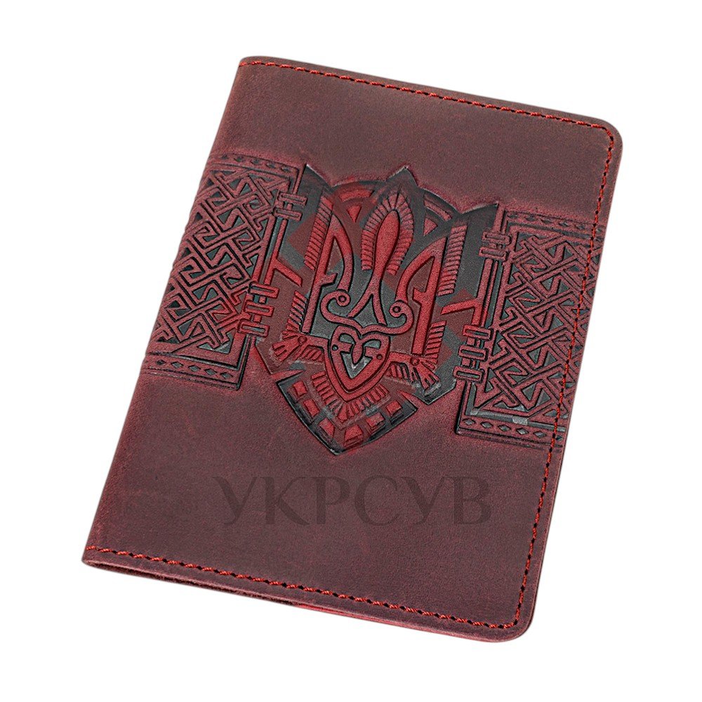 Обкладинка для паспорта "Тризуб - геометрія", бордовий (29020)
