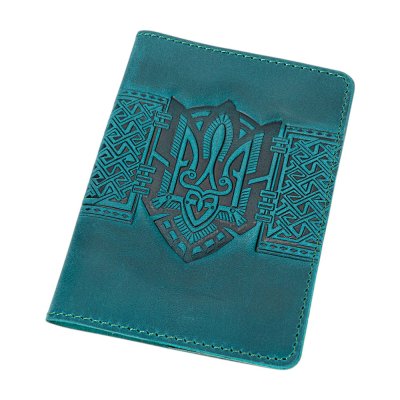 Обкладинка для паспорта "Тризуб - геометрія", бірюзовийЛаконічна обкладинка для паспорта з виразним тисненням у вигляді Тризуба, доповненого геометричним орнаментом. Дизайн поєднує символіку державності та сучасну графічну стилістику, створюючи стриманий, але впізнаваний образ. Виготовлена зі 100% натуральної шкіри, обкладинка приємна на дотик і відзначається високою зносостійкістю. Матеріал з часом набуває благородного вигляду, зберігаючи естетику та функціональність виробу. Компактний формат забезпечує зручність у щоденному використанні, а внутрішні кишені дозволяють акуратно розмістити паспорт та інші необхідні документи. Це практичний аксесуар із глибоким змістом і характером.