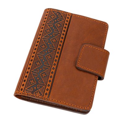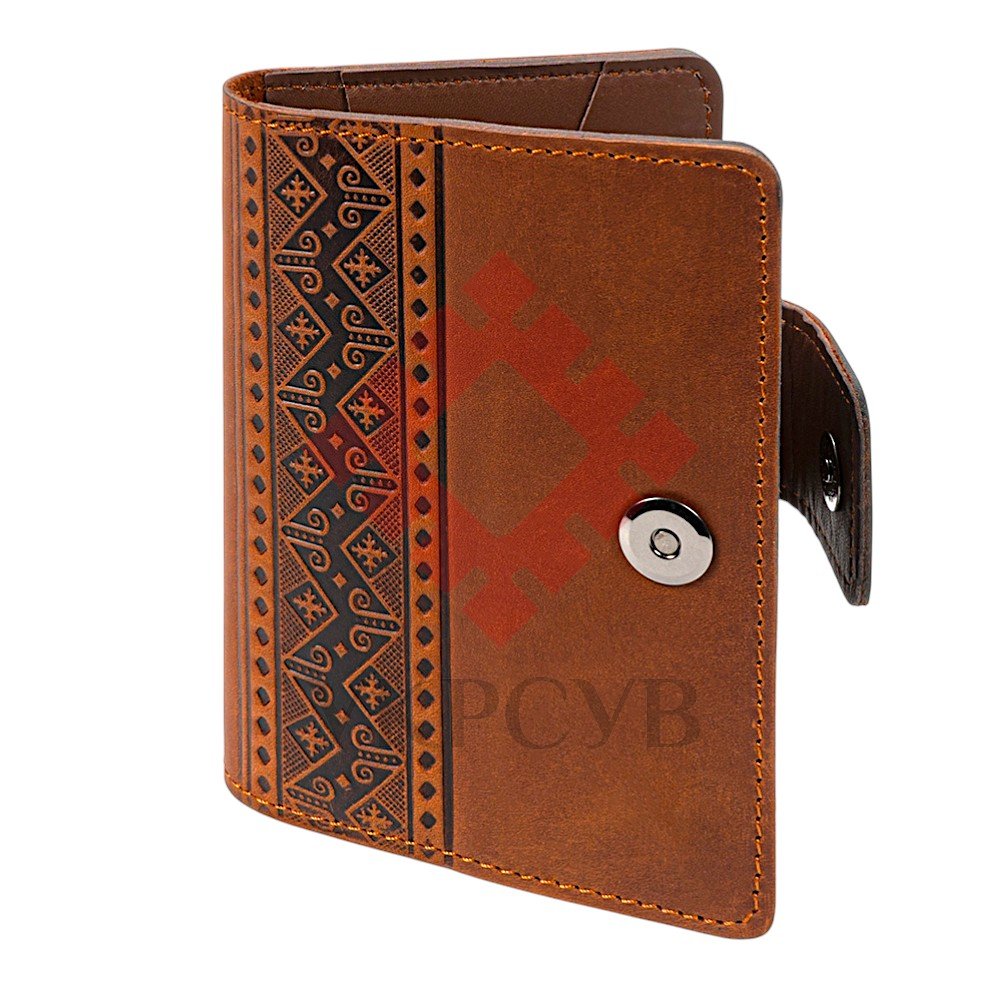 Обкладинка для документів "Вишивка", рудийЕлегантна обкладинка для документів поєднує сучасний стиль і традиційні українські мотиви. Вишуканий орнамент, виконаний методом тиснення, нагадує елементи вишивки та додає виробу характеру й особливої естетики. Виріб виготовлений зі 100% натуральної шкіри, яка приємна на дотик і з часом набуває ще більш благородного вигляду. Продумана конструкція зручна у щоденному користуванні: обкладинка надійно захищає документи, а компактний формат дозволяє легко носити її з собою. Акуратні шви, практична застібка та внутрішні відділення створюють відчуття завершеності й комфорту. Такий аксесуар стане не лише функціональною річчю, а й стильним акцентом, що підкреслює індивідуальність власника.