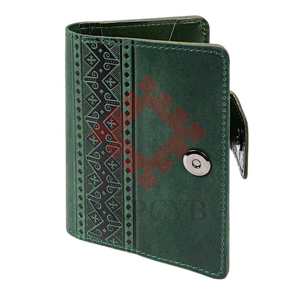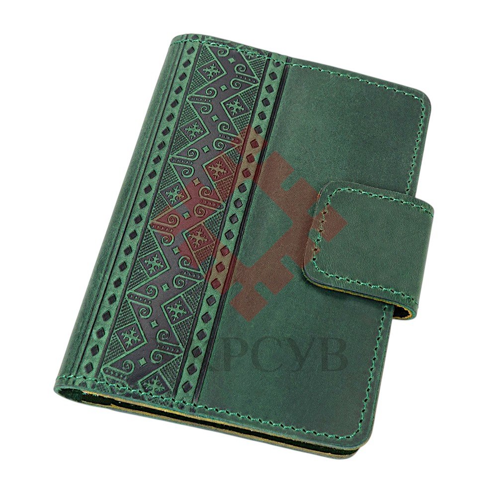 Обкладинка для документів "Вишивка", зеленийЕлегантна обкладинка для документів поєднує сучасний стиль і традиційні українські мотиви. Вишуканий орнамент, виконаний методом тиснення, нагадує елементи вишивки та додає виробу характеру й особливої естетики. Виріб виготовлений зі 100% натуральної шкіри, яка приємна на дотик і з часом набуває ще більш благородного вигляду. Продумана конструкція зручна у щоденному користуванні: обкладинка надійно захищає документи, а компактний формат дозволяє легко носити її з собою. Акуратні шви, практична застібка та внутрішні відділення створюють відчуття завершеності й комфорту. Такий аксесуар стане не лише функціональною річчю, а й стильним акцентом, що підкреслює індивідуальність власника.